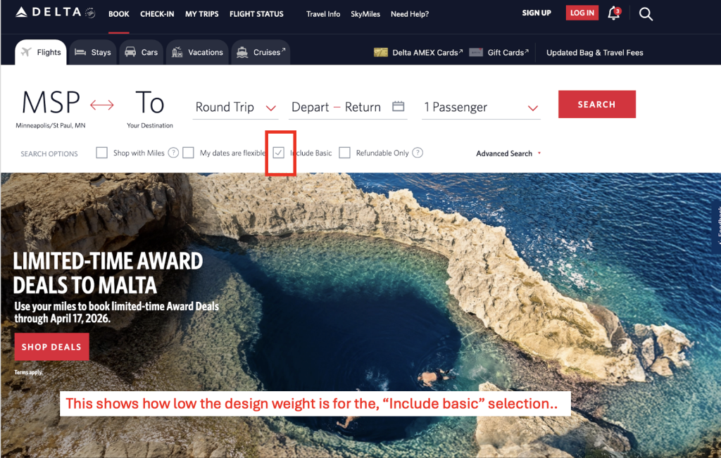 The customers who walk straight into the booking mechanism are those with the deepest loyalty. They earn SkyMiles status because they automatically buy through the Delta app and website instead of using Expedia or other third-party booking services. They chose Delta over every competitive alternative for years and built their booking behavior around the longstanding fare (and rewards) architecture, because purchase intent locks in quickly at step one.